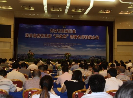8月30日,湖南省建筑行業(yè)落實(shí)省委省政府“三優(yōu)先”精神合作對接會(huì )議在長(cháng)沙召開(kāi),我司董事長(cháng)唐仕亮受邀參加,會(huì )議圍繞貫徹省委省政府“三優(yōu)先”精神,引導和支持省內大型建設業(yè)主、建筑業(yè)企業(yè)、工程機械企業(yè)以及鋼鐵、水泥等建材企業(yè)合作對接、互利共贏(yíng),進(jìn)一步擴內需、穩增長(cháng),促進(jìn)我省經(jīng)濟平穩較快發(fā)展。省政府副省長(cháng)韓永文出席會(huì )議并講話(huà),省住房和城鄉建設廳廳長(cháng)高克勤、省經(jīng)信委副主任殷林波、省交通運輸廳副廳長(cháng)趙平、省國資委副主任盧光祖出席會(huì )議,省財政廳、省水利廳、省商務(wù)廳、省建材行辦等省直單位有關(guān)領(lǐng)導,各市州住房和城鄉建設部門(mén)負責人、相關(guān)科室負責人,各市州城市建設投資公司負責人和省內部分建筑業(yè)企業(yè)、工程機械、鋼鐵、建材生產(chǎn)企業(yè)負責人參加會(huì )議。會(huì )議由省住房和城鄉建設廳副廳長(cháng)唐道明主持。