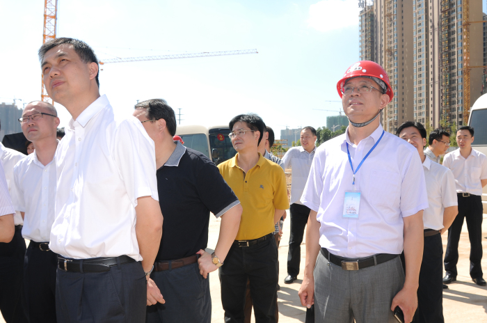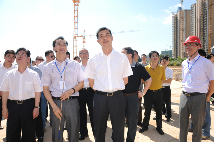 7月10日,衡陽(yáng)市市委書(shū)記李億龍、市長(cháng)周海兵一行在我司董事長(cháng)唐仕亮等人的陪同下,蒞臨由我司承建的CC PARK紅星美凱龍國際家居廣場(chǎng)工程項目部視察指導工作。