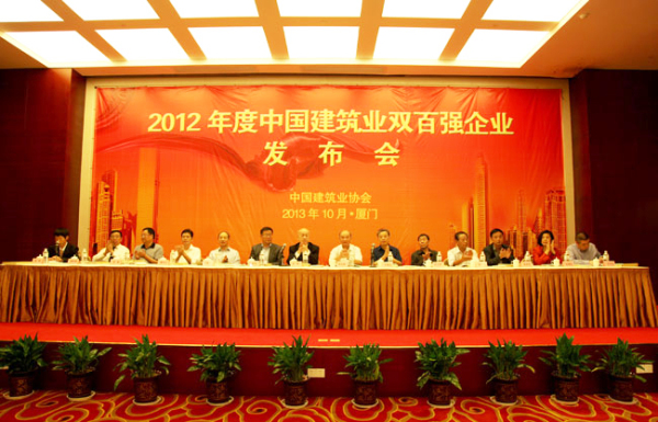 10月17日,中建協(xié)在廈門(mén)召開(kāi)發(fā)布會(huì ),向2012年度中國建筑業(yè)雙百強企業(yè)頒發(fā)牌證,同時(shí)發(fā)布《2012年度中國建筑業(yè)雙百強企業(yè)研究報告》。中建協(xié)副會(huì )長(cháng)徐義屏、副會(huì )長(cháng)兼秘書(shū)長(cháng)吳濤出席會(huì )議,副秘書(shū)長(cháng)趙峰主持會(huì )議。