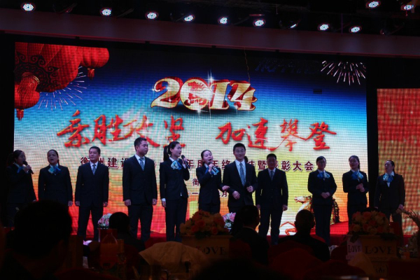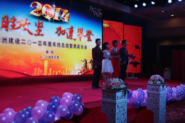 湖南省衡洲建設有限公司2013年度總結表彰大會(huì )于2014年元月18日在華天大酒店湖南廳勝利落下帷幕。包括衡陽(yáng)市豐盈投資管理有限公司、衡陽(yáng)衡洲足浴城、衡陽(yáng)市衡洲物業(yè)管理有限公司等十幾個(gè)衡洲子公司在內的500余名員工和嘉賓參加聯(lián)誼會(huì )。衡南縣人大、衡南縣統戰部、衡南縣工商聯(lián)、洲市鄉黨委政府等各位領(lǐng)導也出席了本次會(huì )議。會(huì )上公司董事長(cháng)唐仕亮先生發(fā)表了重要講話(huà),將公司2013年的工作進(jìn)行了總結與點(diǎn)評,并為2014年的工作指明了方向。會(huì )議共表彰了優(yōu)秀員工20人,優(yōu)秀建造師8人,優(yōu)秀分公司2家,優(yōu)秀項目部5個(gè)。