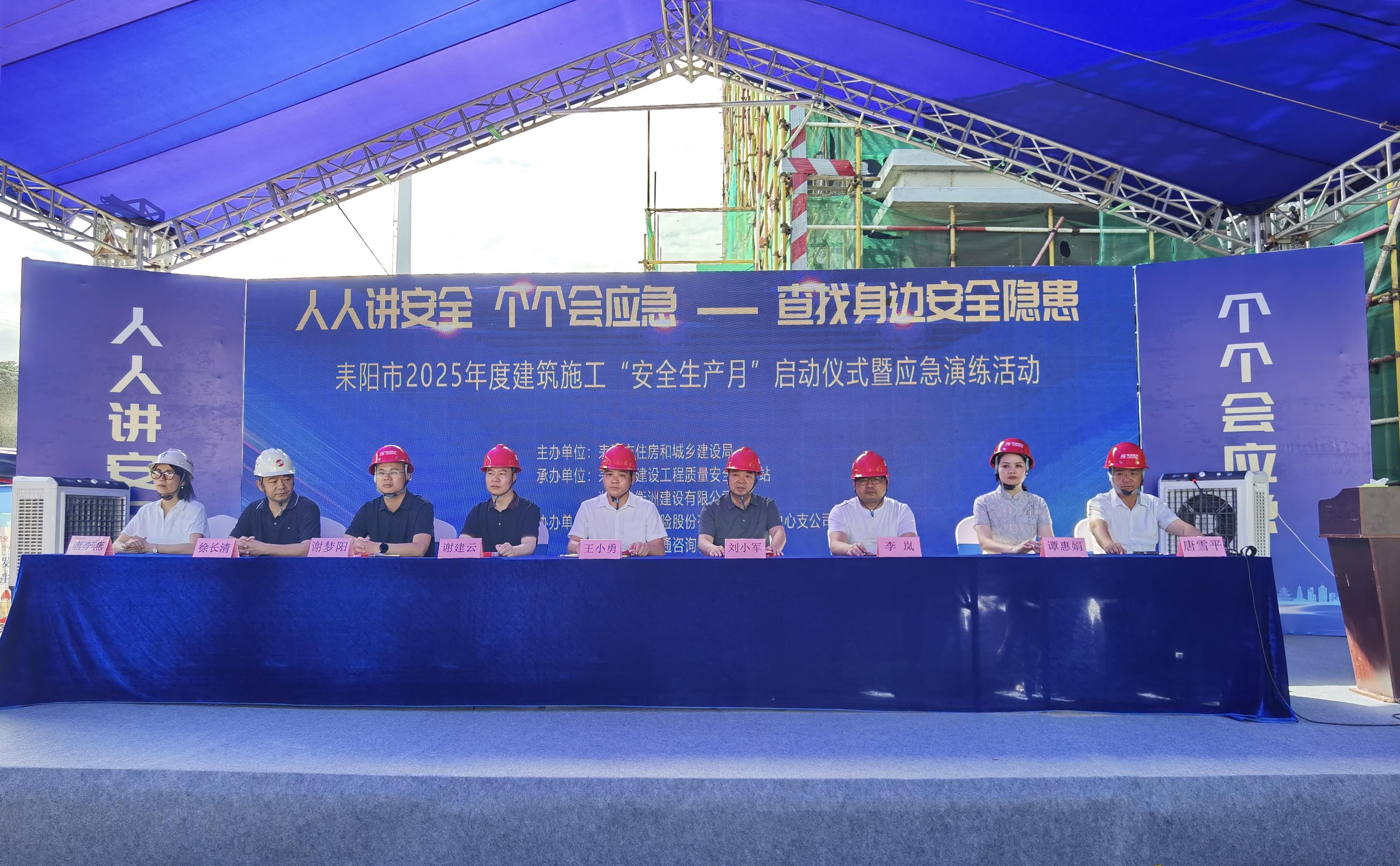 6 月17日,以 “人人講安全 個(gè)個(gè)會(huì )應急 —— 查找身邊安全隱患” 為主題的耒陽(yáng)市 2025 年度建筑施工安全生產(chǎn)月活動(dòng)啟動(dòng)儀式暨應急演練活動(dòng),在湖南省衡洲建設有限公司承建的耒陽(yáng)市 “二所合一”(看守所、拘留所) 建設項目現場(chǎng)成功舉辦。耒陽(yáng)市住房和城鄉建設局總工程師王小勇,市住建局、質(zhì)安站等職能部門(mén)領(lǐng)導,以及全市300余名在建工地建設、施工、監理單位項目負責人齊聚一堂,共繪安全生產(chǎn)藍圖。作為本次活動(dòng)的承辦方,衡洲建設充分發(fā)揮企業(yè)擔當,緊扣活動(dòng)主題,以高標準、嚴要求精心籌備每一個(gè)環(huán)節,全方位保障活動(dòng)高效有序開(kāi)展?;顒?dòng)開(kāi)場(chǎng),全體人員通過(guò)觀(guān)看安全生產(chǎn)主題宣傳片與警示片,敲響安全警鐘。副總經(jīng)理謝夢(mèng)陽(yáng)代表公司致辭,他表示,衡洲建設始終將安全生產(chǎn)視為企業(yè)發(fā)展的生命線(xiàn),未來(lái)將持續加大安全投入,強化員工安全培訓,以更高標準落實(shí)安全生產(chǎn)責任,為耒陽(yáng)市建筑行業(yè)安全生產(chǎn)樹(shù)立標桿。